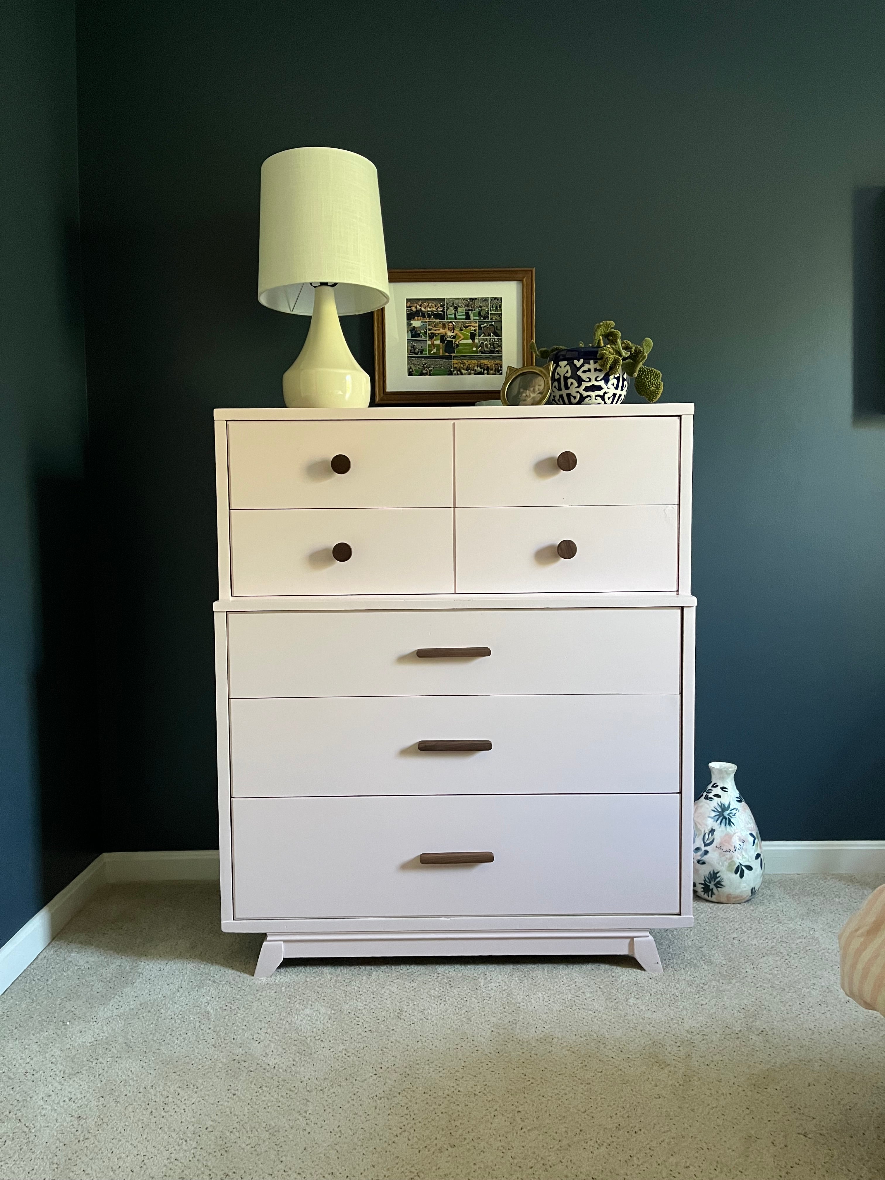Refinished Mid-Century Dresser in Blush Pink