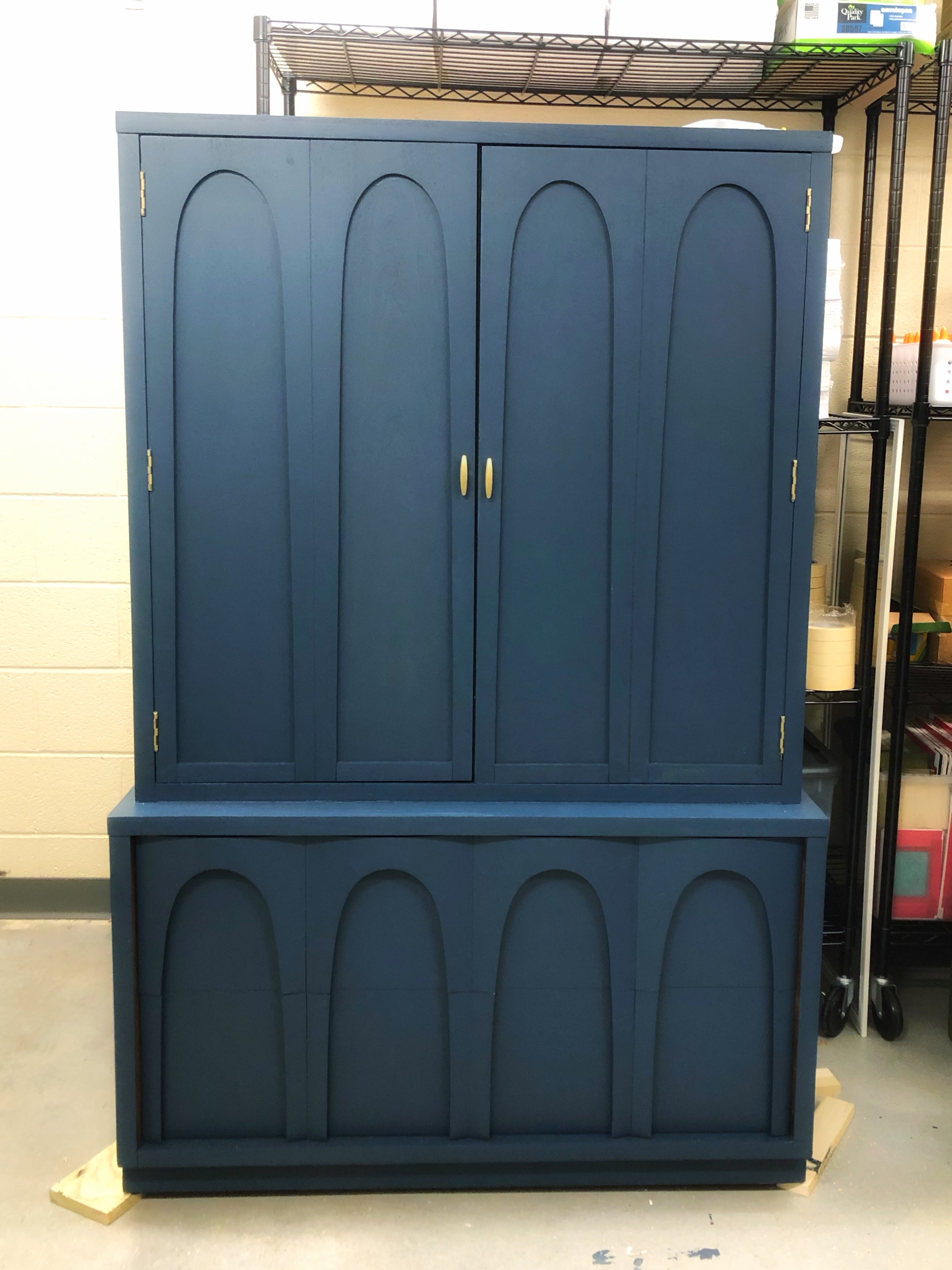 Refinished Mid-Century Armoire in Deep Navy