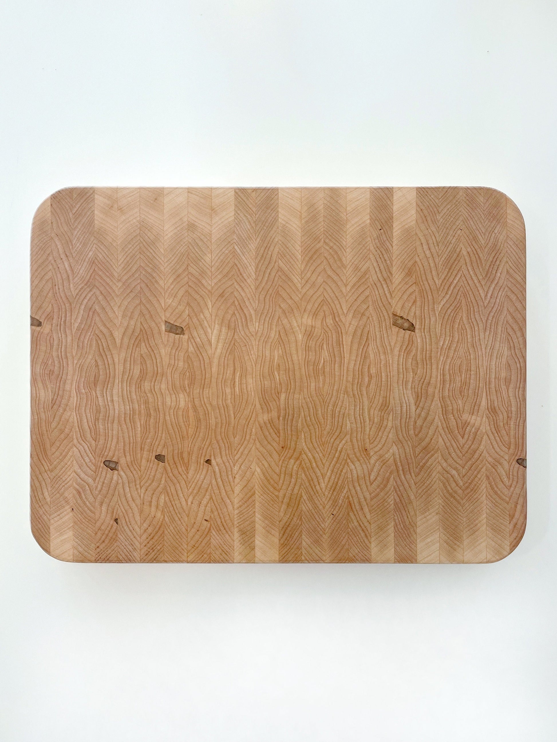 Every once in a while Mike finds a special and unique batch of wood, and these end grain boards are the product of such a find. End grain cutting boards are the most durable of our boards, have the ability to hide knife marks, and will not dull knives as quickly as plastic or glass cutting boards. They require a lot more work for Mike, but the patterns they create are so unique (and unpredictable!), making them even more special! And as with all of our boards, Mike constructs each one piece by piece for durability and beauty.
